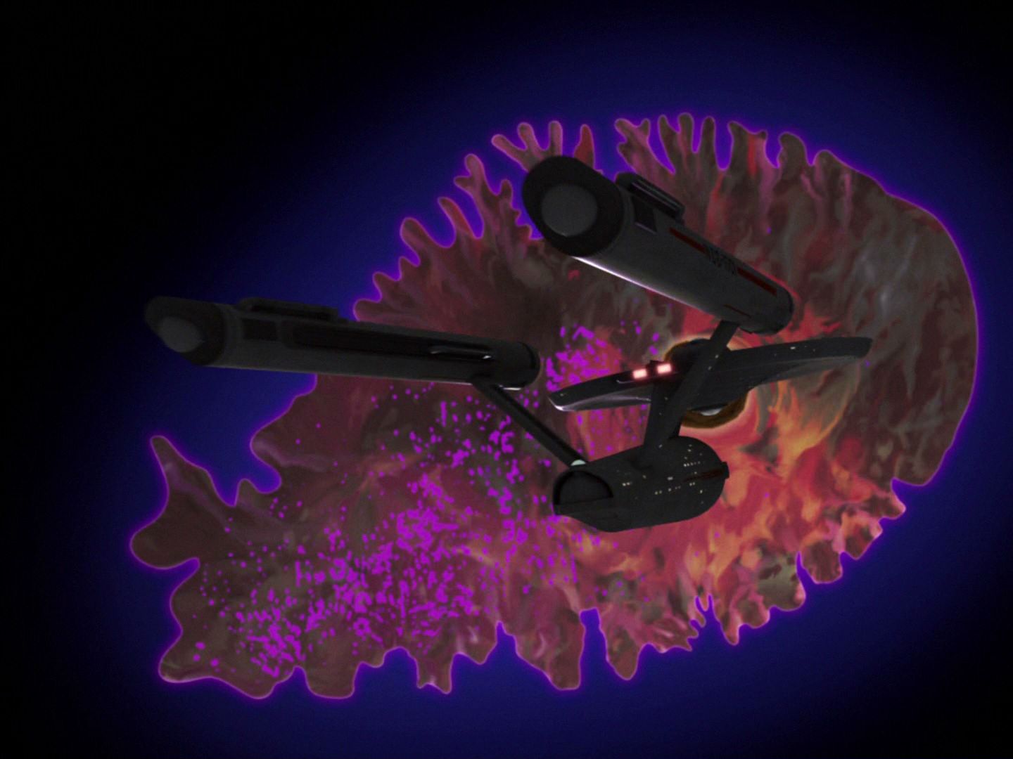 이 글에 덧붙인 그림은 Star Trek 오리지널 시리즈 두 번째 시즌의 에피소드 18 'The Immunity Syndrome(면역증후군)' 의 한 장면이다. 간단히 이 에피소드를 축약하면, Kirk 함장이 이끄는 U.S.S. Enterprize호는 이상한 암흑 지대(Kirk: 'It likes a hole in space.')를 발견하고 탐사선을 보내는데, 얼마 지나지 않아 탐사선의 대원들이 죽음의 위기에 놓이게 된다. Dr. McCoy가 이것이 우주의 기계적, 생물학적 에너지를 흡수하는 매우 단순한 단세포 유기체 같은 것임을 알아내자 Kirk 함장은 Spock와 Scotty를 각각 셔틀에 태워 보내 이에 대한 더 많은 정보를 얻어내려 한다. Spock는 이 생명체가 번식을 앞두고 있고 만약 번식이 시작되면 이 생명체가 급속하게 확산되면서 은하계 전체가 위험에 빠질 것임을 보고한다. Spock와 Scotty가 죽을 위험에 빠져 있는 상황에서 Kirk와 McCoy는 앤터프라이즈호를 '항체'로 사용하여 이 생명체를 파괴하기로 결심을 한다. 자살 공격 같은 무모해 보이는 이 작전을 앞두고 .......
